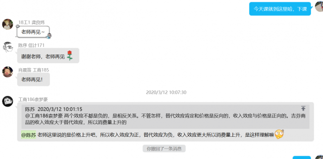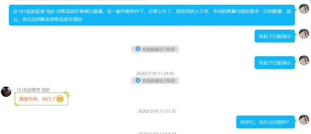 本人使用QQ的白板教学,在上课的过程中允许学生在学习通和QQ群跟我互动,同时也鼓励学生提问或者进行讨论。我也会主动询问学生学习进展如何、有没有什么问题。除了讲授课程内容,针对每次课的内容发布相应的练习题给学生做。