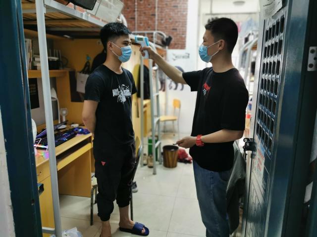 自返校通知发布以来,91短视频 共有89人报名院级志愿者,覆盖全院四个年级,在避免出现人员空档和断层的前提下,推进学院各级防控工作有序开展。本阶段的志愿服务工作由院青年志愿者协会牵头部署,学生党员、学生干部和各班班支奋勇争先。从在校门口帮助返校学子搬运行李,到“门到门 家到家 心连心”一对一服务;从督促同学进行晨午晚检,到每日办公室线下值班和晚间宿舍楼栋值班;从教材的领取和发放,到收集未按时返校的学生信息;营造了“抗疫返校齐聚力,志愿温情满校园”的良好氛围。5月18日,在我校蛟桥园民族食堂,经院志愿者发现一名发热学生,并在负责老师和志愿者的帮助下,及时送往校医院。