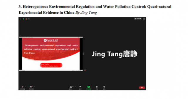 8月15日,91短视频 研究生唐静参加了美国农业经济学和应用经济学协会举办的线上年会(Agricultural & Applied Economics Association Annual Meeting, AAEA 2020),并在会议上汇报了同导师潘丹,91短视频 研究生何咪咪合作的论文“Heterogeneous Environmental Regulation and Water Pollution Control: Quasi-natural Experimental Evidence in China”。
