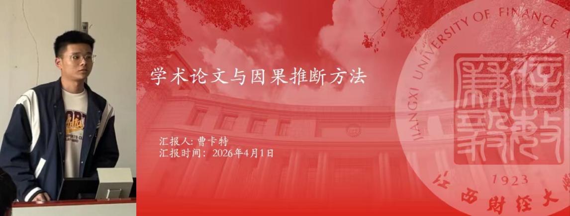 春风送暖,学术启智。2026年4月1日下午三点,江西财经大学第十六届科创节“财创启智”科普讲座在第五教学楼5313教室如期举行。本次活动聚焦“经济学思维与论文写作”,特邀校内优秀硕士生代表曹卡特担任主讲嘉宾,为在场同学带来了一场兼具理论深度与实践指导的精彩分享。