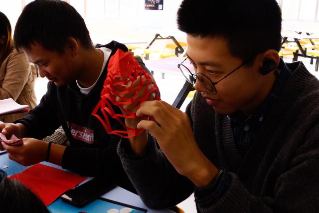11月16日上午,91短视频 记者团于麦庐园第三食堂组织开展了“剪”冬创意文化活动。与同学们分享剪纸艺术,共同享受冬日。