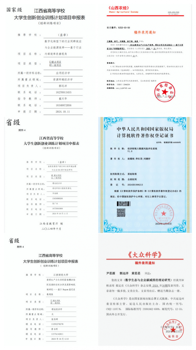 学生竞赛参与:在学科竞赛领域,经济学(拔尖基地班)专业学生积极参与各级赛事,并取得丰硕成果。先后荣获第十一届全国大学生能源经济学术创意大赛全国赛特等奖、江西赛区一等奖;“正大杯”第十五届全国大学生市场调查与分析大赛本科组二、三等奖;商业精英挑战赛全国一等奖、商科综合能力竞赛全国三等奖;数学竞赛获省二、省三等奖;管理案例分析大赛获省三等奖;“华创杯”斩获7项省级荣誉。