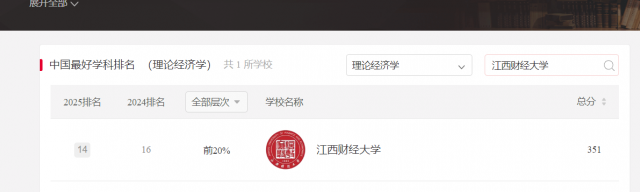 理论经济学学科位列榜单第14位,继续保持排名前20%。