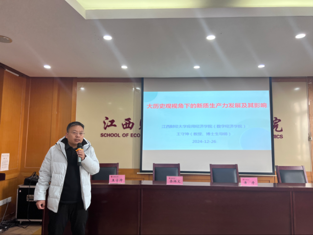 In the expert keynote report session, Professor Wang Shoukun, Vice Dean of the Digital Economy School, presented on the theme The Development and Impact of New Quality Productive Forces from a Macro-Historical Perspective. He reviewed the leading role of productive forces in social changes, elaborated on the meaning of new quality productive forces, and analyzed their profound impact on the Six Major Relationships. Professor Wang proposed specific policy suggestions for the development of new quality productive forces and provided valuable theoretical guidance and research insights for the students.