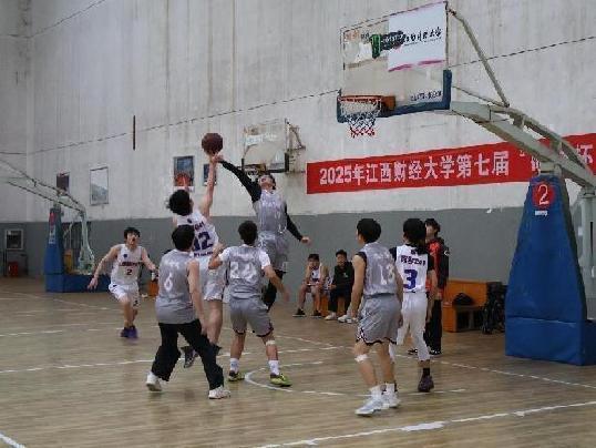 白队11号球员迎着灰队防守球员的封盖强行出手,篮球擦板直奔篮筐;灰队19号抢下篮板迅速反击,白队32号横向移动死死贴防!比分胶着的赛场,每一次卡位、每一次封盖都拼至全力!