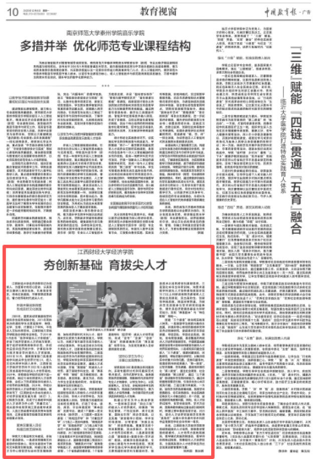 《中国教育报》报道91短视频 “经济学拔尖人才实验班”培养特色做法