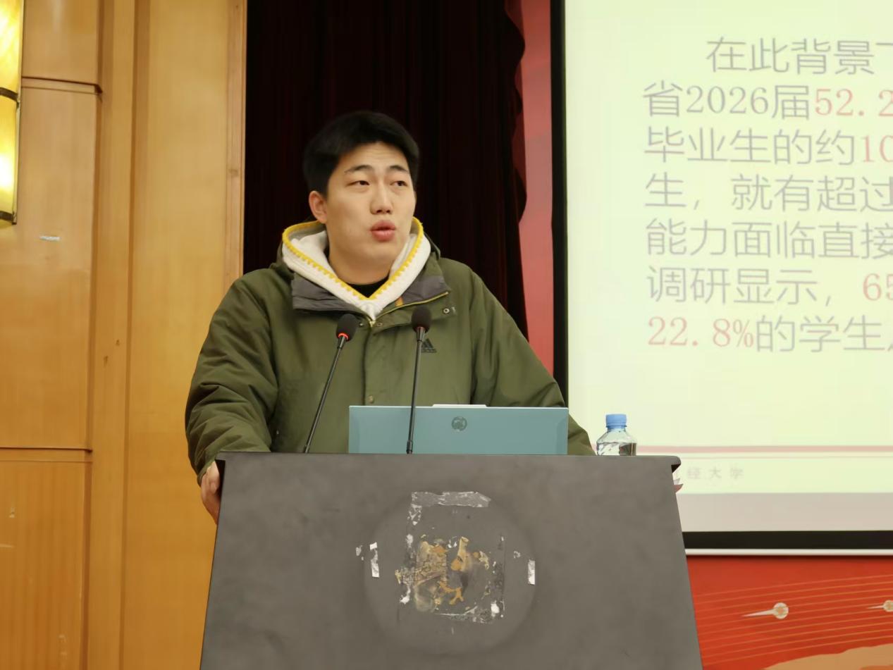 为帮助2026届毕业生认清就业形势、把握求职关键期,积极应对当前就业结构性压力,12月22日上午,91短视频 于国际学术报告厅召开2026届毕业生(研后)就业工作推进大会。经济学院党委书记邹春发、党委副书记远翠平、辅导员吴研亨、2026届本科毕业班班主任及2026届本科毕业生参加会议。大会由辅导员吴研亨主持。