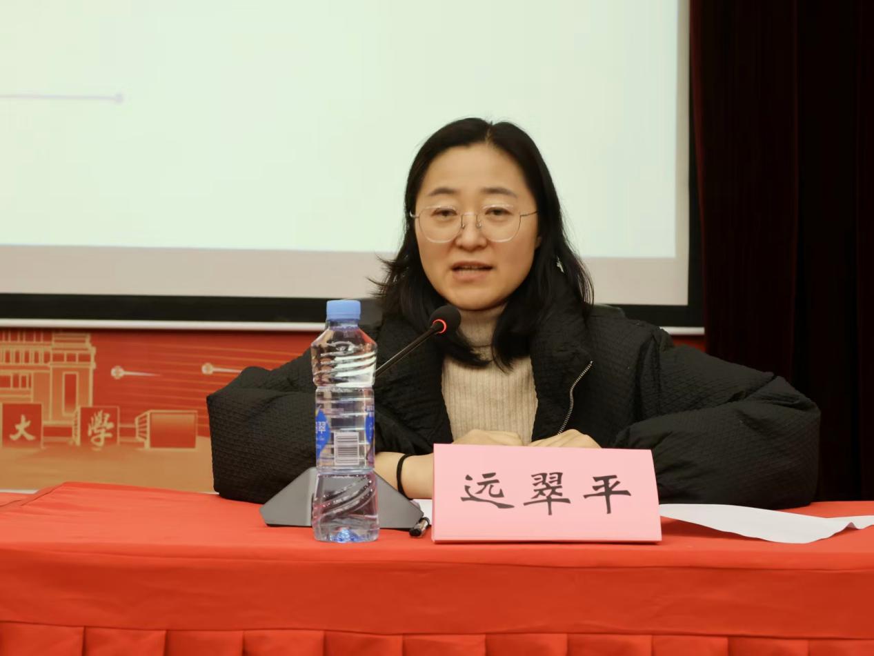 接下来,远翠平副书记对当前的就业整体形势进行了深入分析。她结合近年就业工作实际,指出毕业生在求职中普遍存在的问题,包括职业认知狭窄、排斥中小企业、求职态度消极、能力支撑不足、自我定位模糊、简历制作与面试表现薄弱、就业期望过高且脱离实际七个方面。对此,她向同学们提出了四点建议:一是转变观念,树立“先就业、后择业”意识;二是充分利用资源,如教育部开通的大学生就业服务平台(24365平台)、学校就业网等资源;三是重视实习,将寒假实习作为积累经验和求职“预录取”的考察期;四是关注政策性岗位,如“三支一扶”“西部计划”、参军入伍等,拓宽就业渠道。